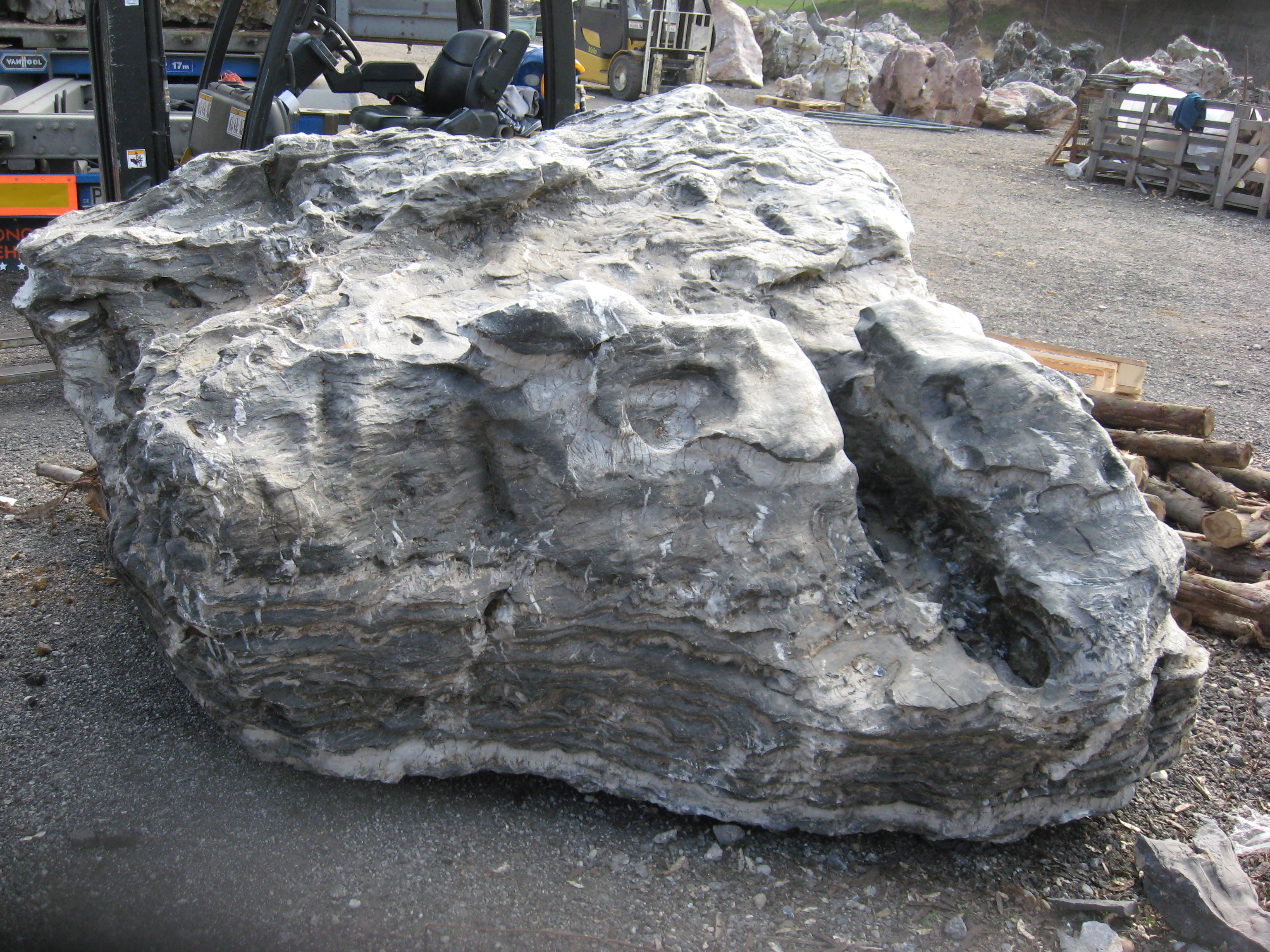 Mimoriadne odolný prírodný kameň (monolit) s neopakovateľnou textúrou, ideálny ako centrálny, exkluzívny a bezúdržbový prvok pre záhrady, terasy alebo komerčné priestory.