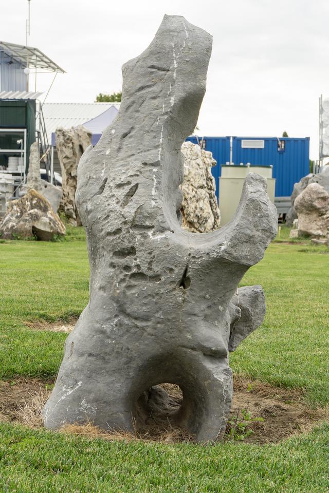 Mimoriadne odolný prírodný kameň (monolit) s neopakovateľnou textúrou, ideálny ako centrálny, exkluzívny a bezúdržbový prvok pre záhrady, terasy alebo komerčné priestory.