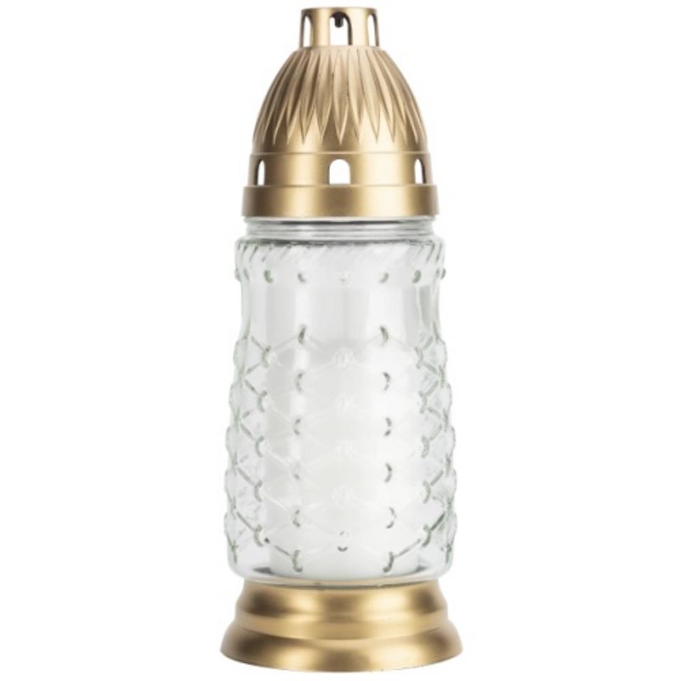 Kahanec Bispol 3034 je elegantné sklenené pietne svetlo s výškou 24 cm, vybavené ochranným vekom a stabilnou podstavou. Súčasťou balenia je certifikovaná parafínová vložka (160 g) s dobou horenia približne 45 hodín, ktorá zaručuje rovnomerný plameň bez dymenia vďaka vysokým kvalitatívnym štandardom značky Bispol.